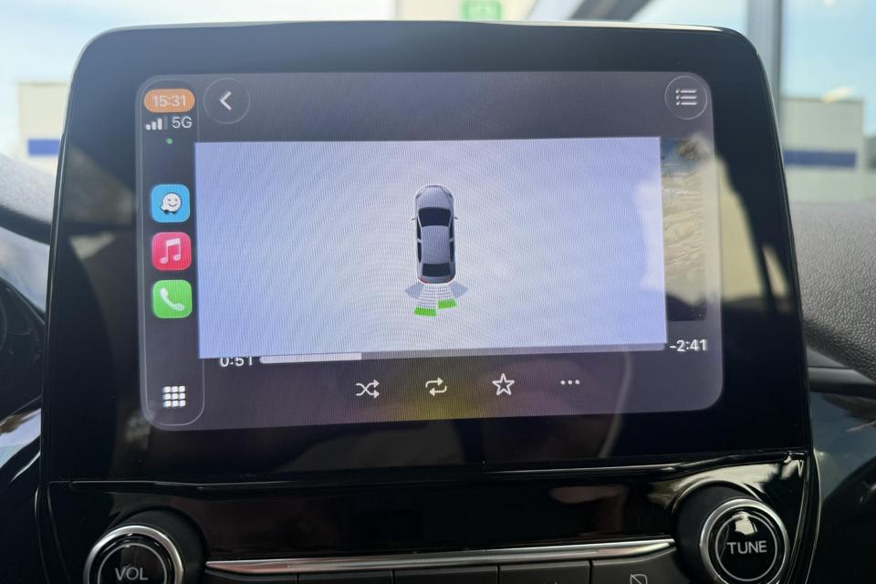 Zoals u mag verwachten van deze Ford Fiesta is hij uitgerust met een reeks aan actieve veiligheidssystemen. Ongemerkt buiten de rijstrook raken? Nee hoor, het Lane-keeping systeem waarschuwt en corrigeert. Brake assist verhoogt de remdruk in een noodsituatie zodat u sneller stil staat. De auto is ook uitgerust met hill hold functie en bandenspanningcontrolesysteem.