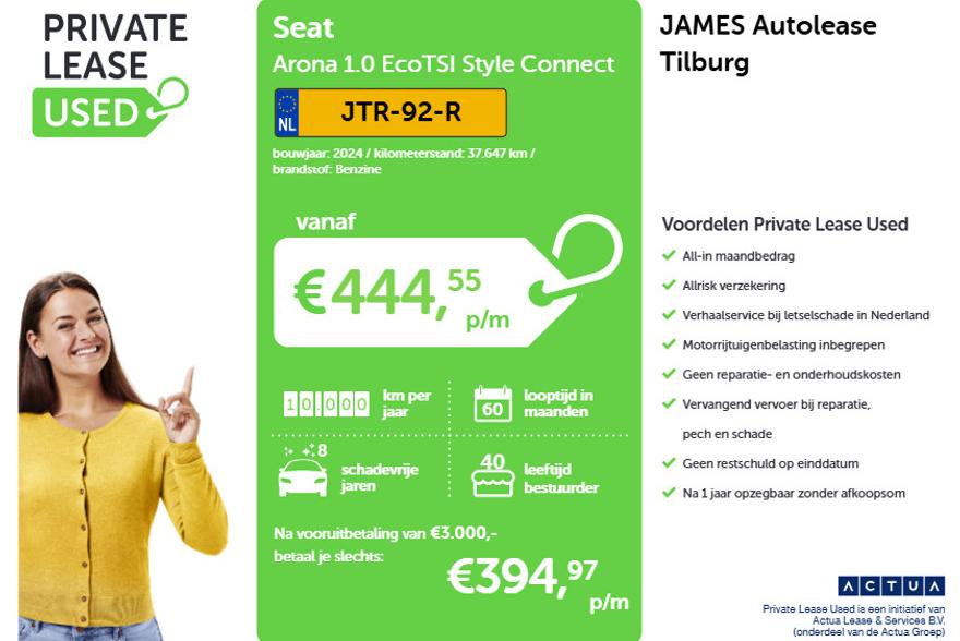 Leaseprijs: € 444 p/m (private lease, 60 maanden, 10.000 km); informeer naar de mogelijkheden en voorwaardenGarantie