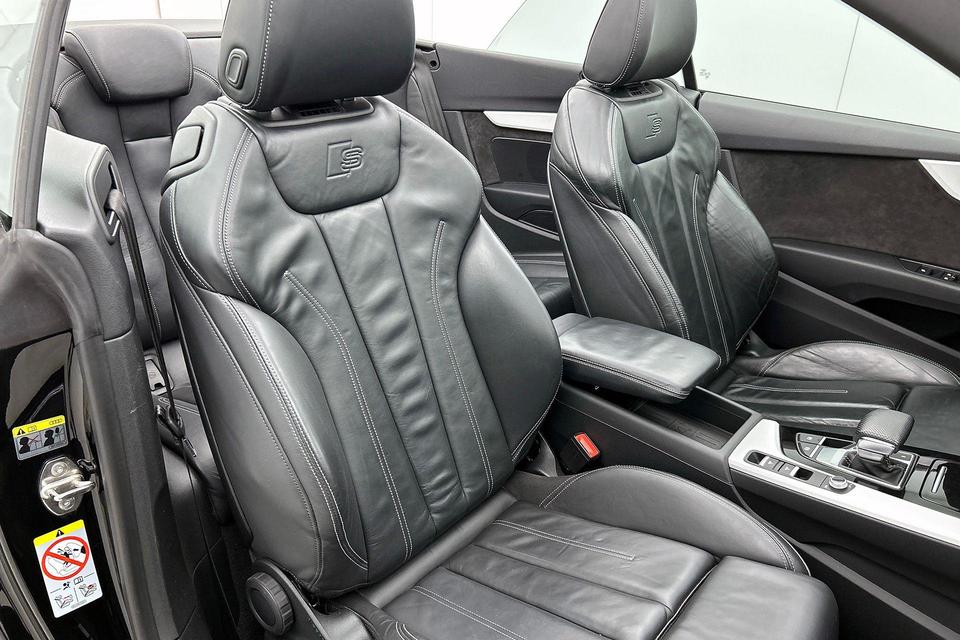 Zijn dynamische uiterlijk maakt al direct duidelijk wat voor rijervaring u van deze Audi A5 Cabriolet mag verwachten: pure sportiviteit. Hij heeft een benzinemotor en een automatische transmissie. Het lederen interieur ademt luxe, en het zit uiteraard fantastisch. Een weldaad voor uw rug en die van uw bijrijder: deze Audi A5 Cabriolet heeft verwarmbare voorstoelen met massagefunctie. Chauffeur en bijrijder zitten stabiel in de scherpe bochten door de sportstoelen. Met het elektrisch bedienbare dak verandert u deze cabrio in luttele seconden in een auto voor zonaanbidders. Met matrix LED-verlichting rijdt u eigenlijk altijd met groot licht, dus maximaal zicht. Toch is verblinden er niet bij, want het systeem regelt de verlichting zo dat tegenliggers er geen last van hebben. Ook 19 inch lichtmetalen velgen, sportonderstel, warmtewerend glas, LED-achterlichten, verstelbare lendensteunen en windscherm horen tot de voorzieningen op deze auto.