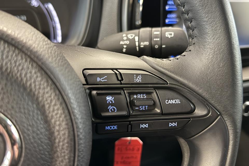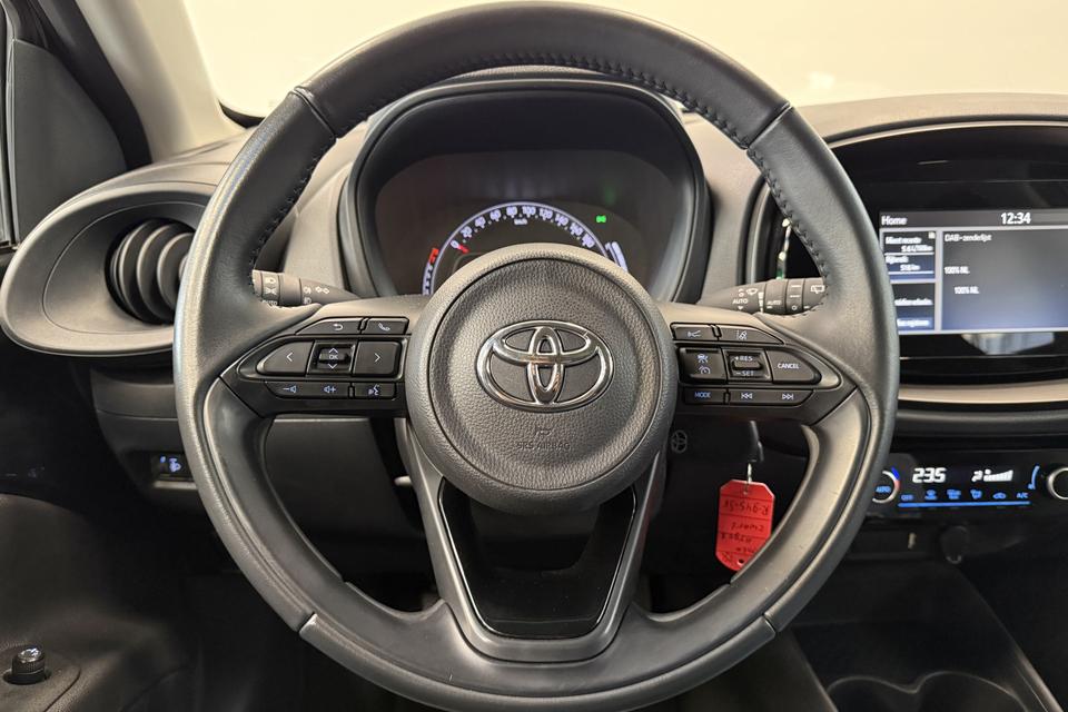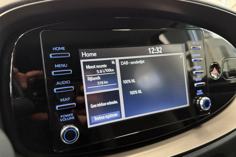 De achteruitrijcamera vergemakkelijkt achteruit inparkeren. U ziet duidelijk wat er achter de auto gebeurt. Adaptive cruise control is veilig en comfortabel. De snelheidsregelaar houdt automatisch afstand tot het voertuig dat voor u rijdt. Ook onderweg wilt u superieure geluidskwaliteit naar eigentijdse normen. Vandaar het uitstekende audiosysteem met DAB-radio. Omdat u nu eenmaal niet overal ogen heeft, is deze Toyota Aygo X voorzien van een achteropkomend verkeer waarschuwing die registreert wanneer de afstand tot uw achterligger te krap is. Of het buiten nu warm is of koud, dankzij automatische airconditioning is het binnen altijd behaaglijk. Ook regensensor, lederen stuur en centrale deurvergrendeling met afstandsbediening horen tot de voorzieningen op deze auto.