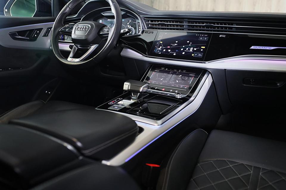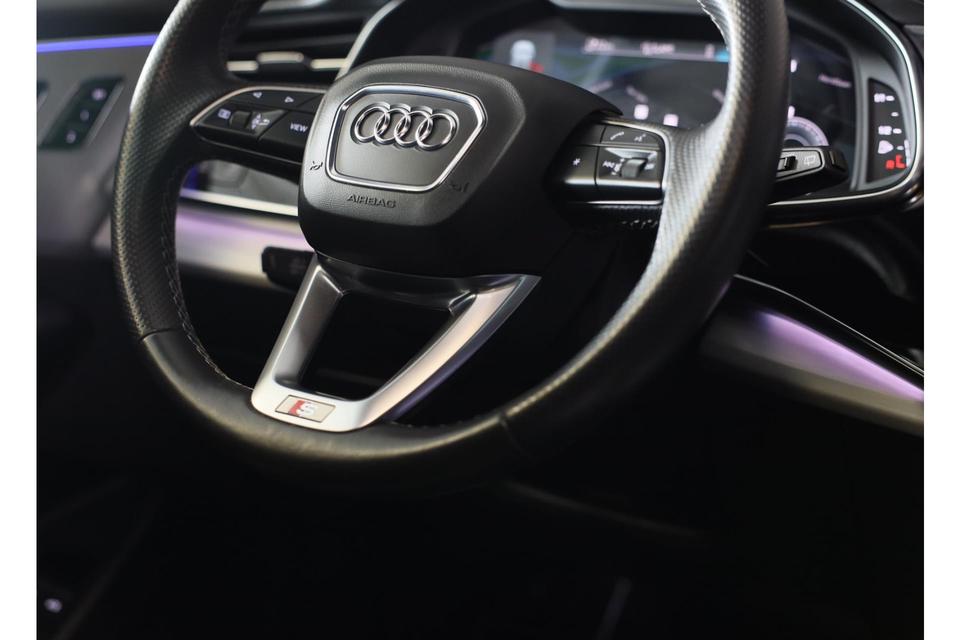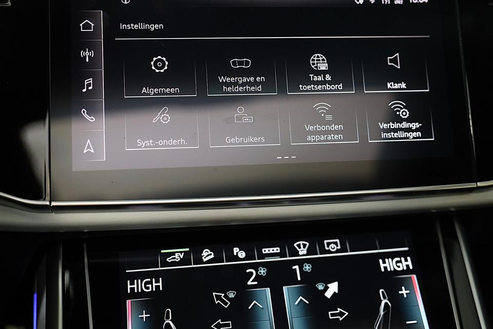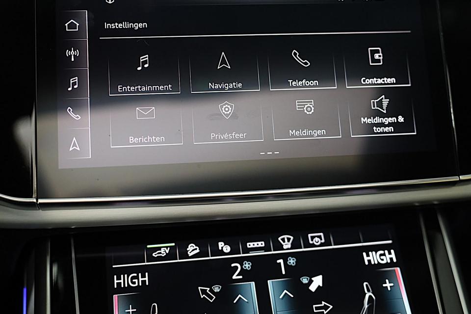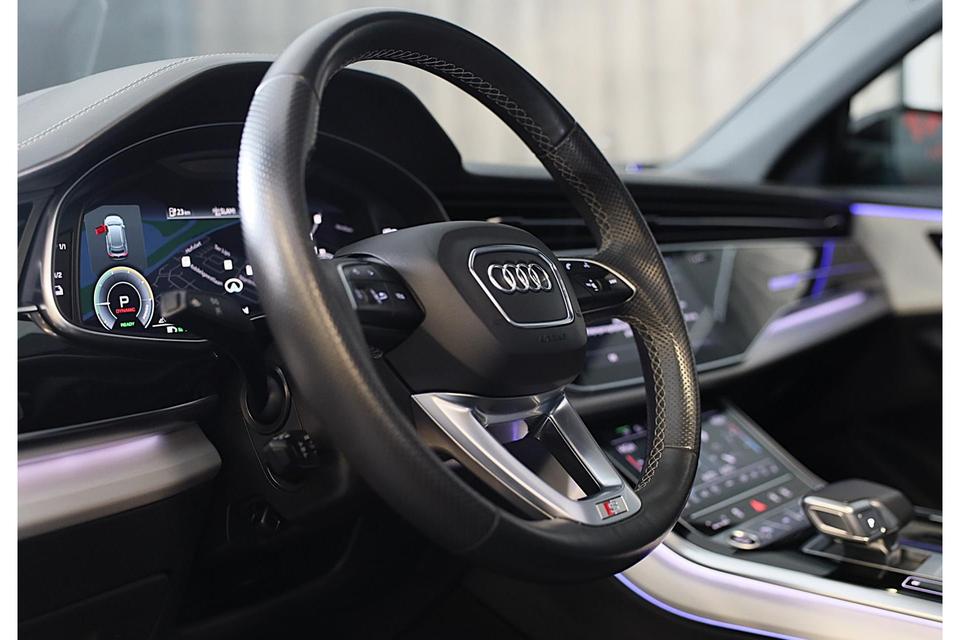 Hij oogt indrukwekkend en sportief, deze Audi Q8. Trap het gaspedaal in en voel de geweldige acceleratie van de zescilinder motor van deze sportwagen. Een fraai lederen interieur, dat in daglicht baadt dankzij het elektrisch bediende glazen panorama dak. En voor 'handsfree' in- en uitladen vindt u aan de achterzijde de elektrisch bedienbare achterklep. Zelfs op de koudste dagen zorgen de stoelverwarming met massagefunctie, stuurverwarming en verwarmbare achterbank voor een comfortabele rijervaring. U past de stoelen moeiteloos aan, ze zijn elektrisch in te stellen en hebben bovendien een geheugen. Niet alleen u zelf geniet van de luchtvering; ook uw banden en remmen hebben veel minder te verduren. En de ergonomische comfortstoelen zorgen voor volmaakte ontspanning. Als u eenmaal kennis hebt gemaakt met het elektrische cabriodak dan weet u het zeker: bij deze auto is over elk detail nagedacht. Xenonverlichting staat borg voor helderwit licht en een krachtige lichtbundel. De uitmonstering van deze auto wordt gecompleteerd door onder meer 20 inch lichtmetalen velgen, LED koplampen, warmtewerend glas, zwarte hemelbekleding, LED-achterlichten en verstelbare lendensteunen.