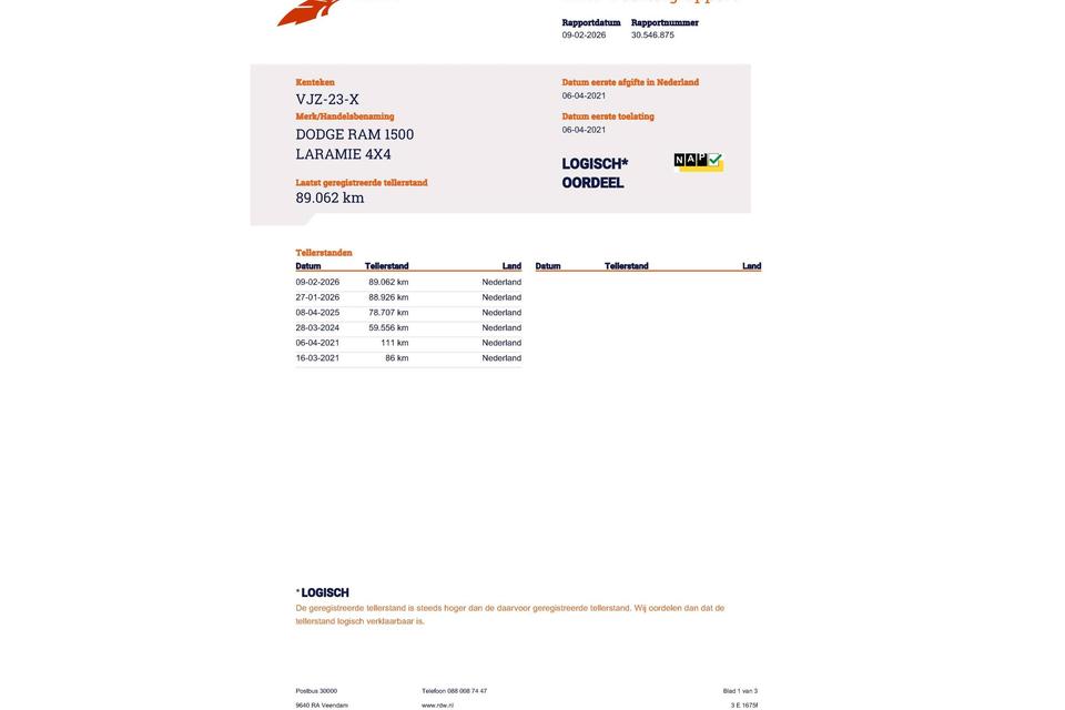 Huidige stand 89.062km