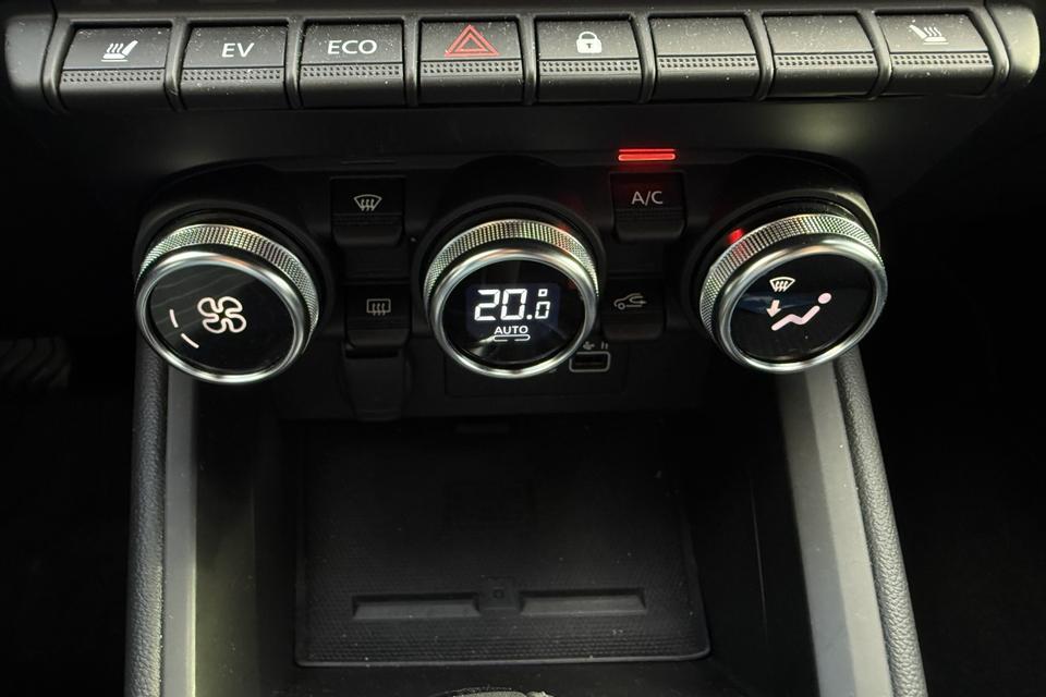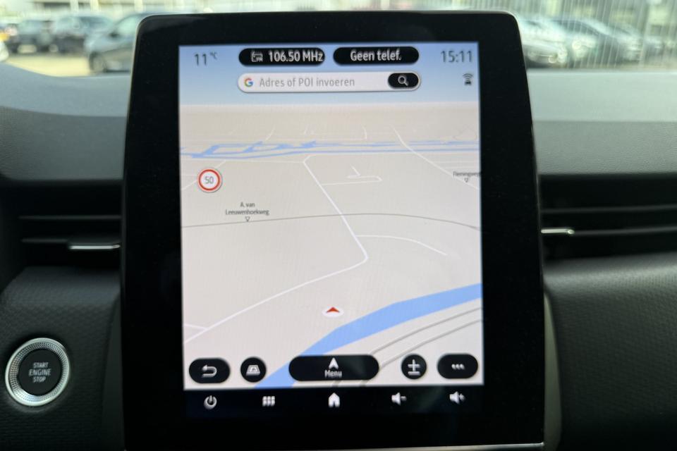 De auto is luxe uitgevoerd met onder andere 17 inch velgen en een groot scherm waarop ook een achteruitrijcamera zichtbaar is.