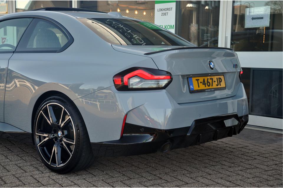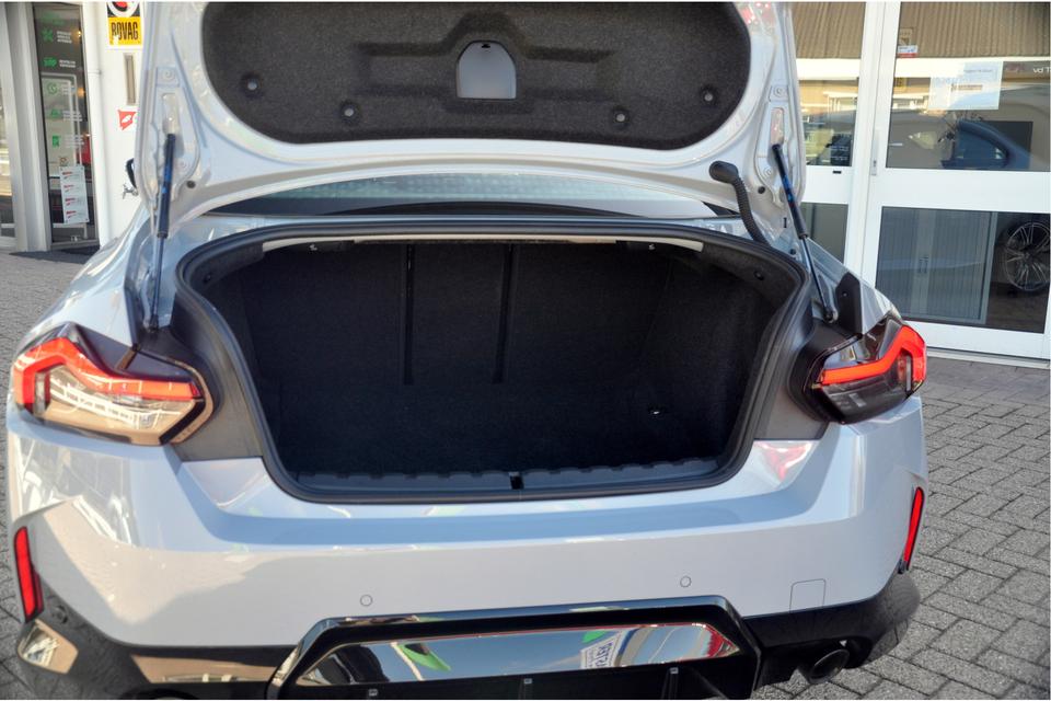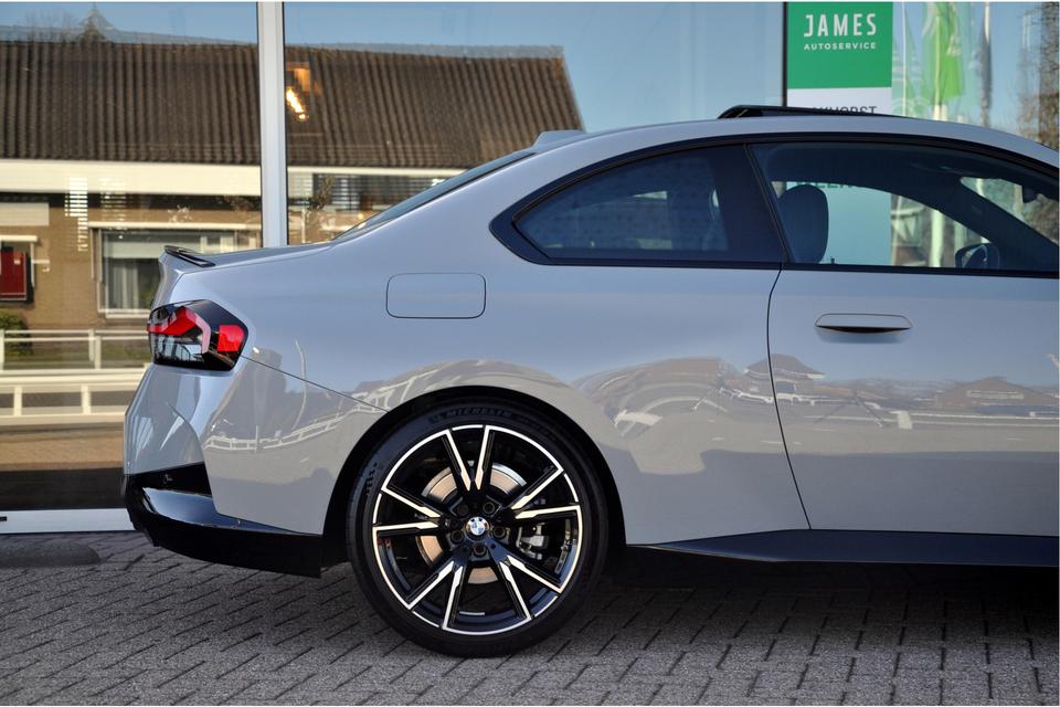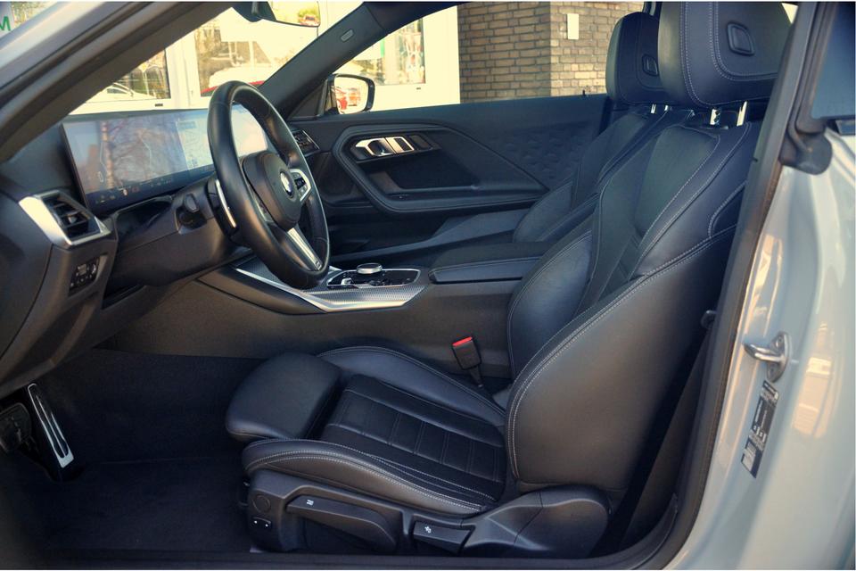 Een ouderwetse compacte sportcoupe, ze zijn er niet veel meer. Wat dat betreft is een 2-serie coupe van het type G42 vermoedelijk een van de laatste der Mohikanen. In het gewilde Brooklyn Grey, met elektrisch bedienbaar schuif-/kanteldak en originele M240i-velgen (Styling 893M) is het dan ook nog eens de auto zoals je deze wil hebben. De subtiele klepspoiler maakt het plaatje compleet. In het interieur is uiteraard een klassiek zwart lederen sportinterieur te vinden. Beter wordt het niet.